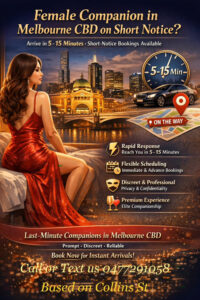 Paramour Of Collins St accommodate short-notice bookings in Melbourne CBD, based on Collins St, as short as 5-15 mins to door within CBD, subject to availability. For priority selection and guaranteed scheduling, advance booking is recommended. However, Paramour of Collins St can absolutely arrange last-minute engagements and aim to respond promptly while providing the utmost service.